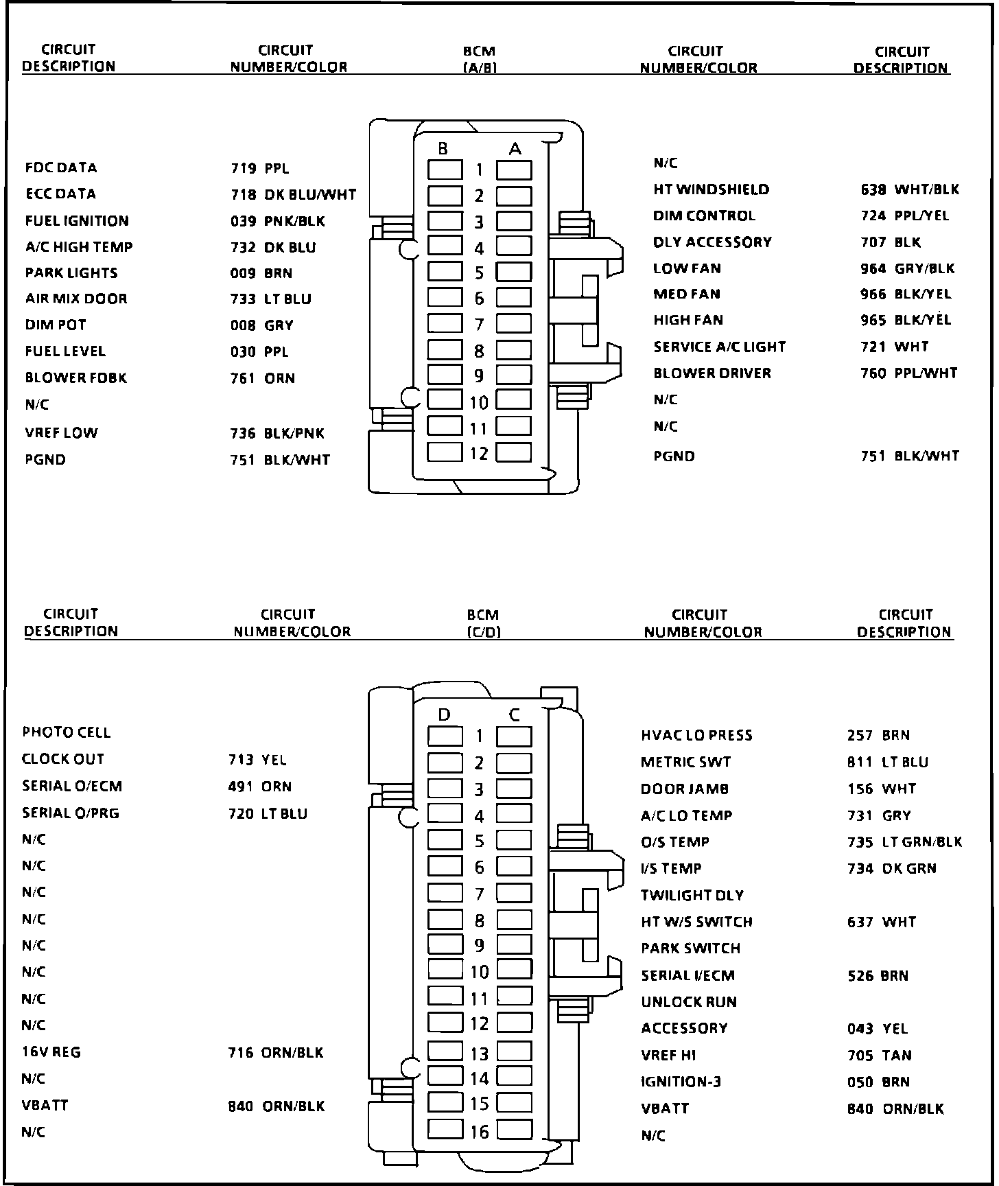 BCM Connector Pin/Out: