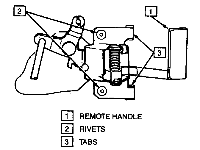 4. Inside remote handle by sliding rearward to disengage tabs on handle from slots in door.