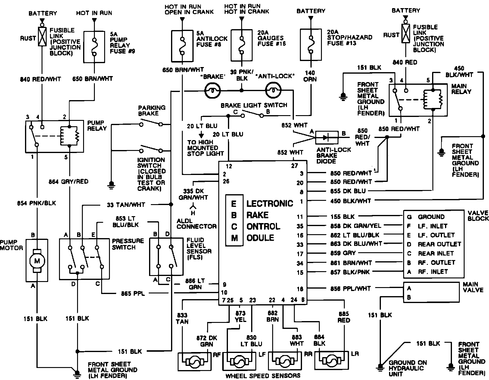 Fig. 48 Anti-Lock Brake System Wiring Schematic. 1989-90 Models Except 6000: