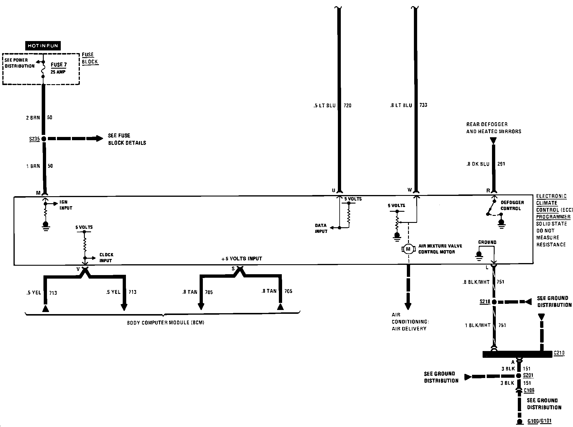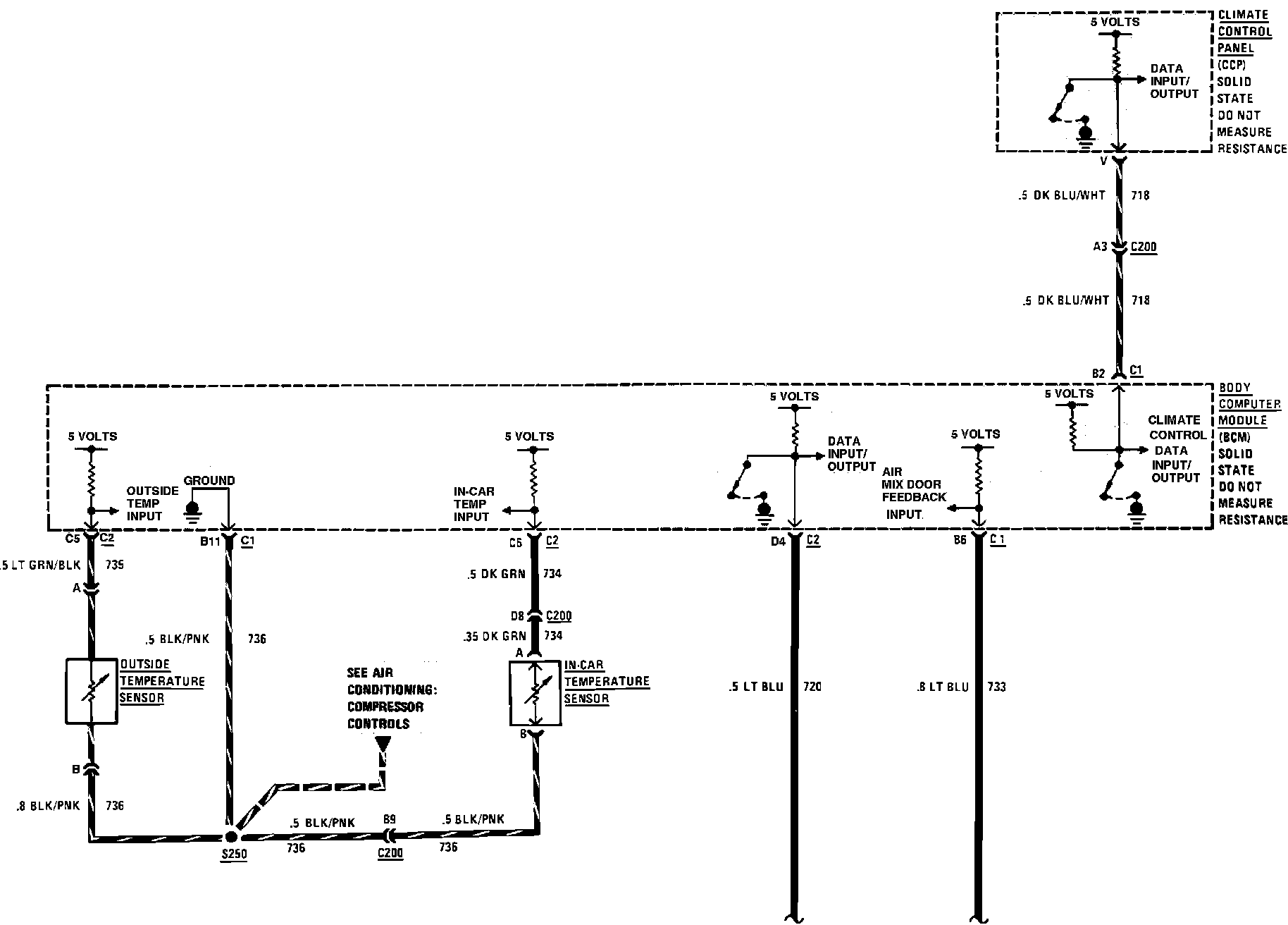 The temperature sensors provide input signals to the Body Computer Module (BCM) which are used by the BCM to control the compressor clutch, blower motor, and air delivery.