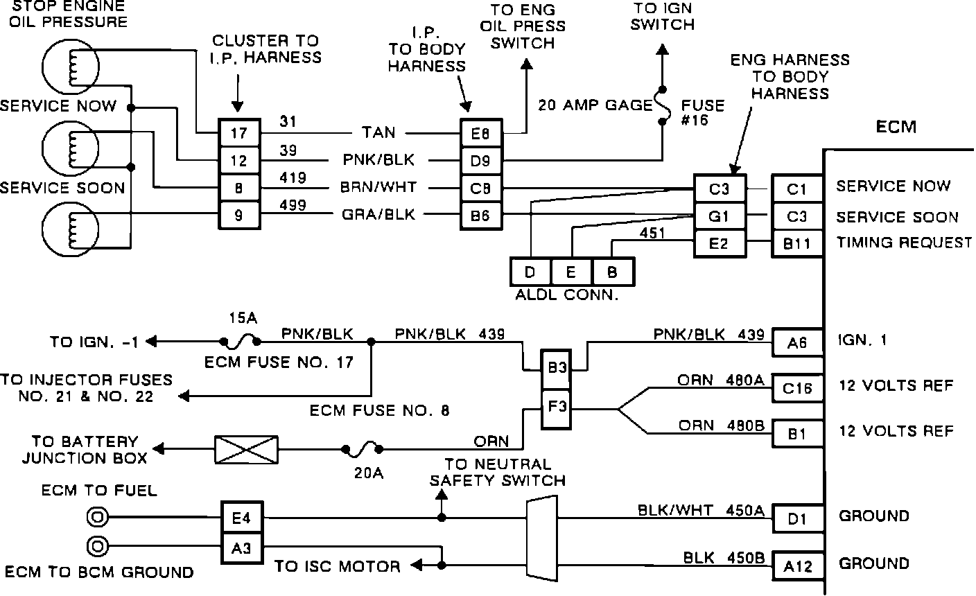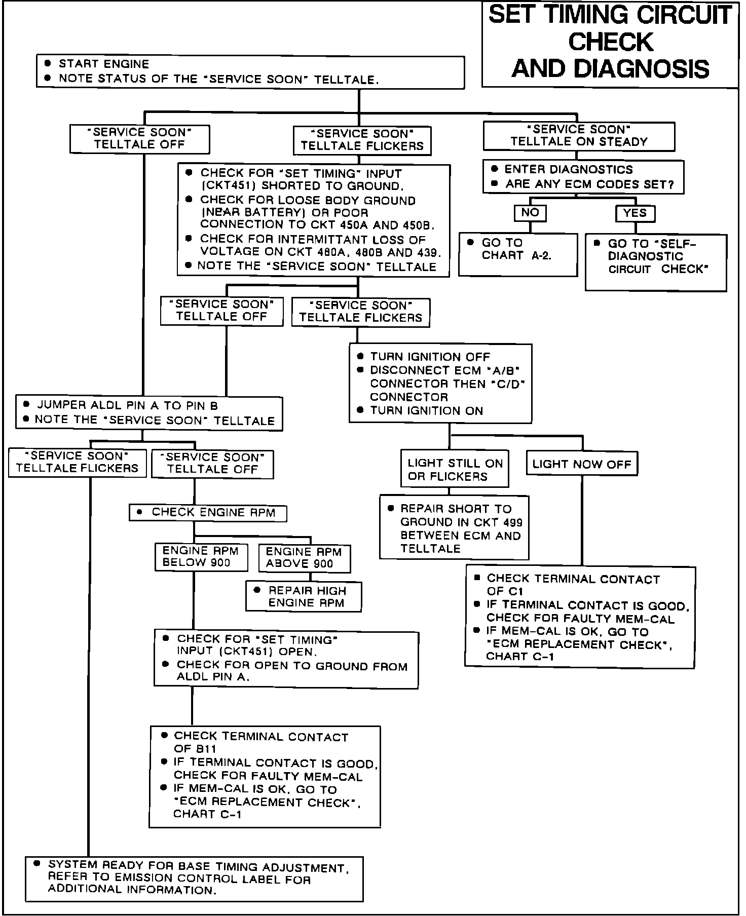 Use this chart if the "SERVICE ENGINE SOON LIGHT" does not flicker when "SET TIMING" is requested.