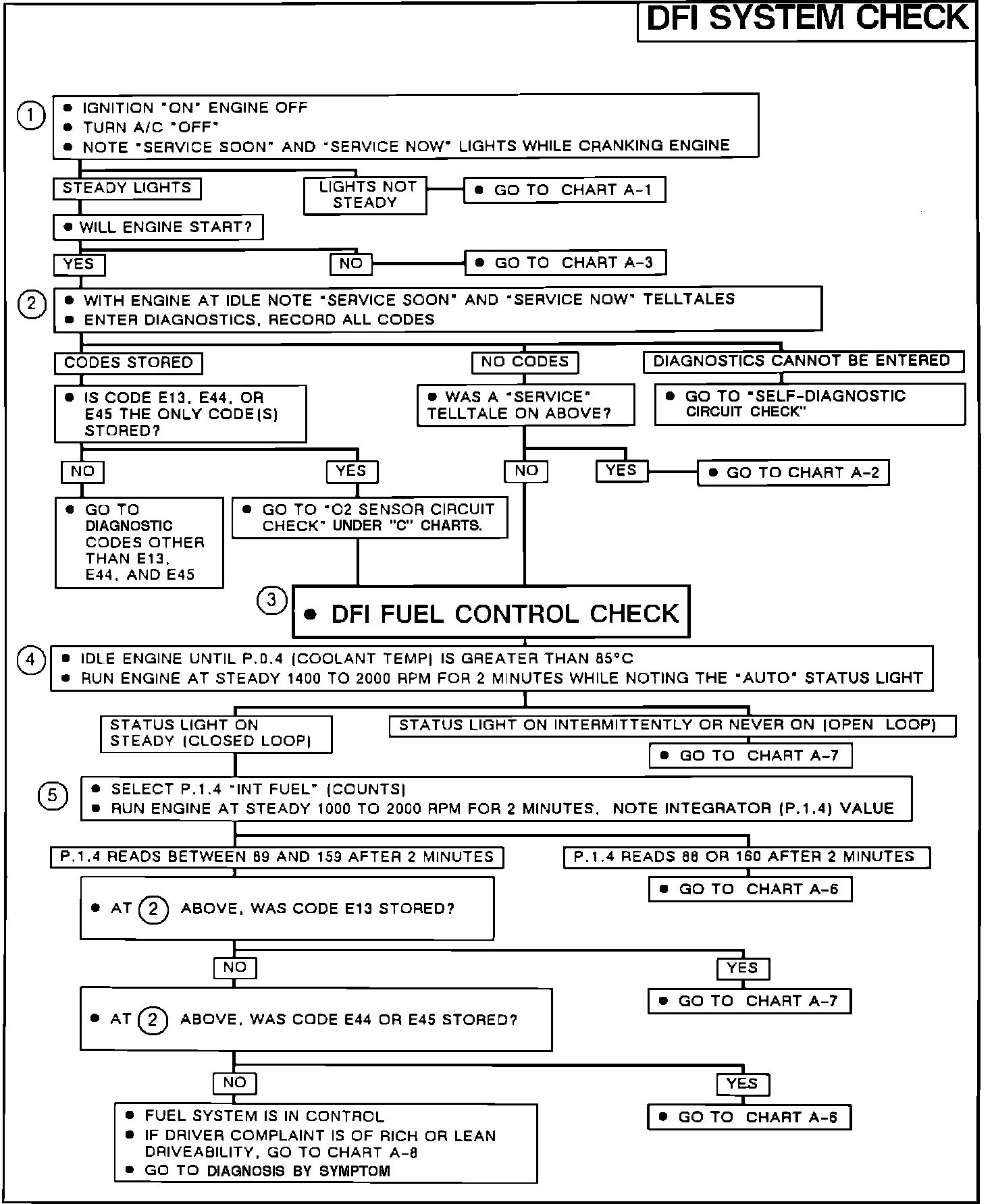 The DFI System Check is an organized approach for identifying a problem caused by the Digital Fuel Injection System. Driver comments normally fall into one of the following areas: