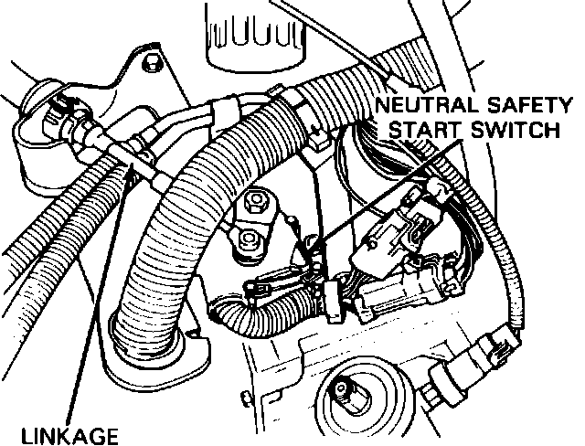 The Park/Neutral (P/N) switch is part of the transmission Neutral Safety Back Up switch (NSBU). Pin A of the six-way weather pack connector, on the NSBU switch, is the P/N switch contact. The P/N switch contacts are closed in park or neutral, shorting NSBU switch pin A to ground. In any other gear range, pin A is open. The Electronic Control Module (ECM) sends 12 volts to pin A of the NSBU. When the gear selector is in park or neutral, the 12 volt signal from the ECM is shorted to ground, resulting in 0 volts at the ECM. In reverse or forward gears the switch will be open, resulting in 12 volts at the ECM. The input switch test code E.7.4 can be used to check the P/N switch for proper operation. An inoperative P/N switch could cause improper idle speed, cruise control, or Viscous Converter Clutch (VCC) operation.