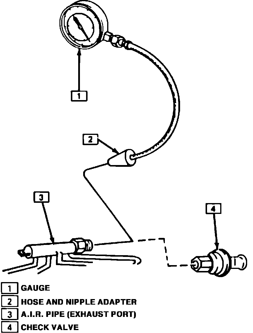1. Remove the rubber hose at the exhaust manifold A.I.R. pipe check valve. Remove check valve.