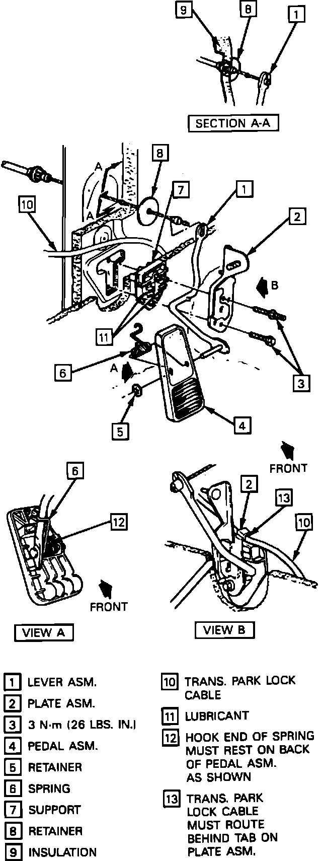 1. Install the accelerator pedal, pedal retainer, and spring.