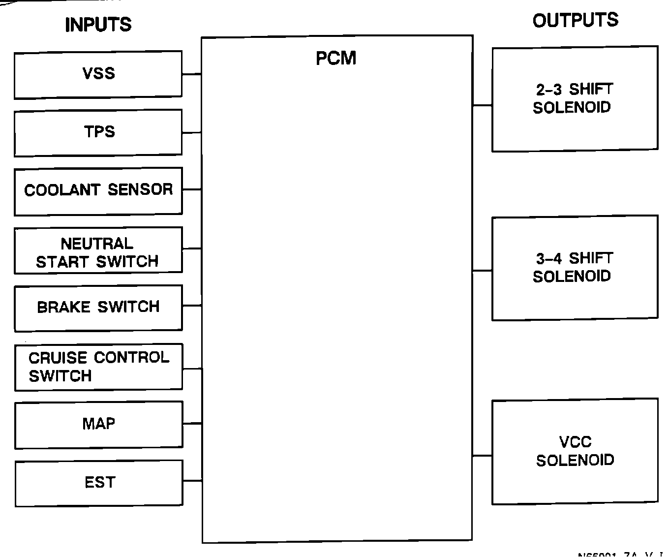 The THM F7 transmission is electronically controlled by the Powertrain Control Module (PCM). Inputs to the PCM determine the shift pattern for third and fourth gears and Viscous Converter Clutch (VCC) operation.