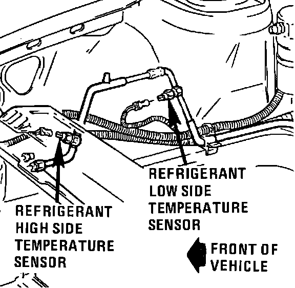 RH Side Of Engine Compartment, Front Of Strut Tower, On A/C Line