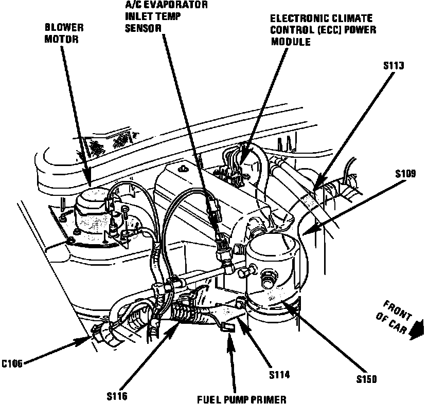 Rear RH Side Of Engine Compartment, Left Of Blower Motor