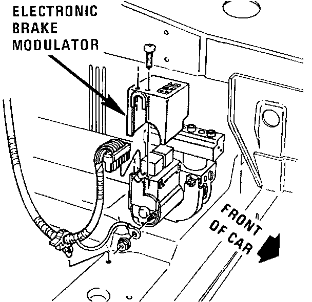 The Electronic Brake Modulator is located in the lower LH front of engine compartment.