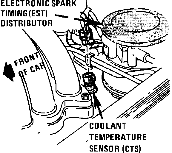 LH top of engine, right of Electronic Spark Timing (EST) Distributor.