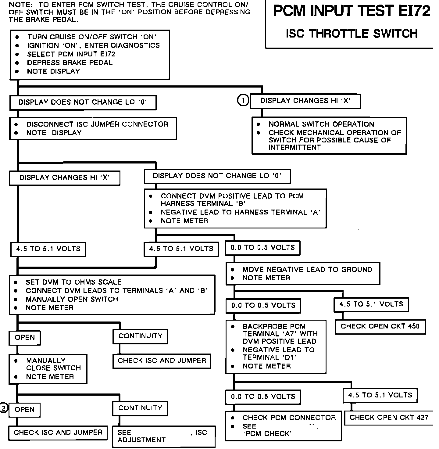 This test detects the open and close of the nose switch of the Idle Speed Control (ISC) at terminal A7 of the PCM/ECM.