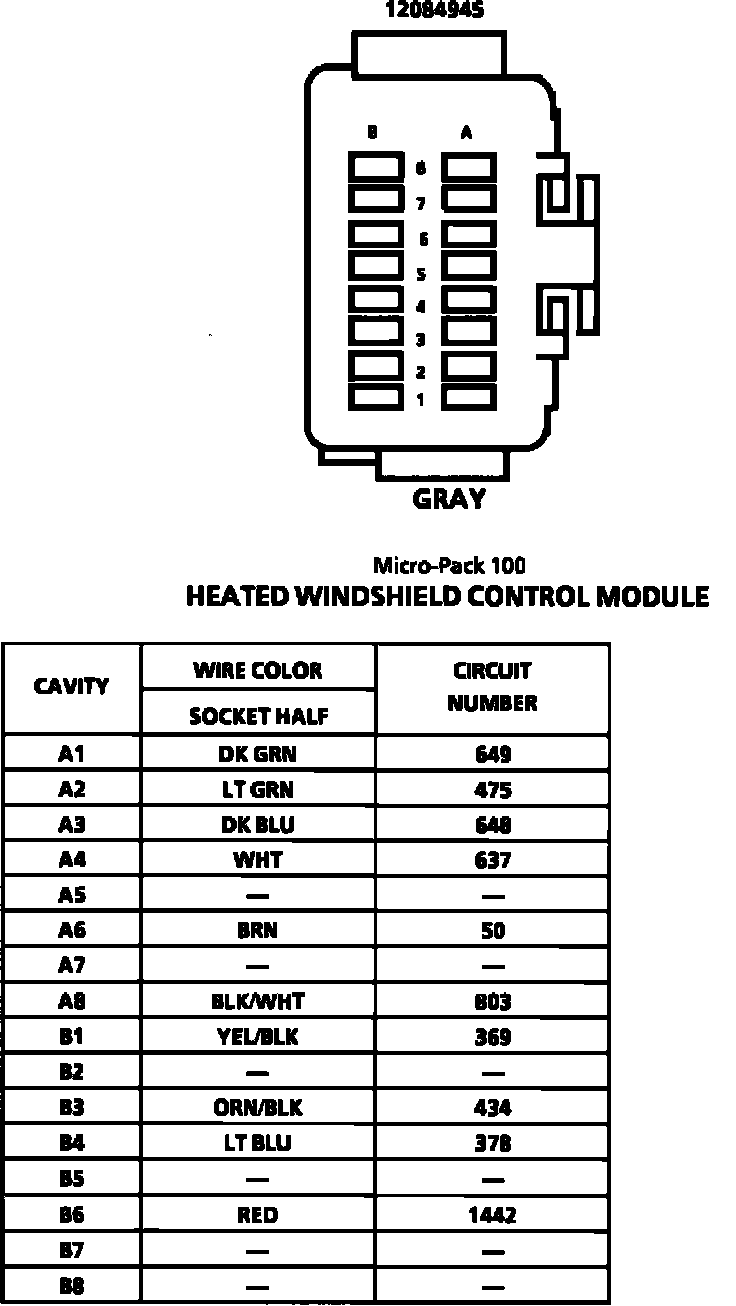 Heated Windshield Control Module Connector Face: