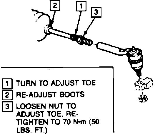 Adjust toe to specifications by rotating inner tie rod.