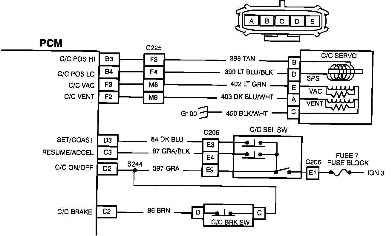 This test detects the close of the resume-accel switch in the turn signal lever at terminal C3 of the PCM/ECM.
