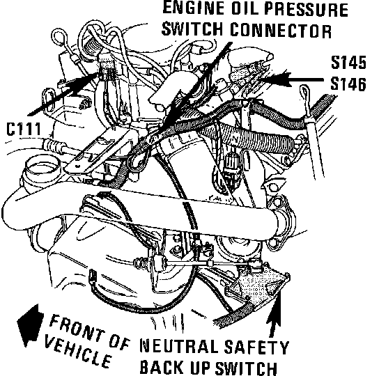 The Neutral Safety Back-up Switch is located on the LH rear of engine, top of transaxle