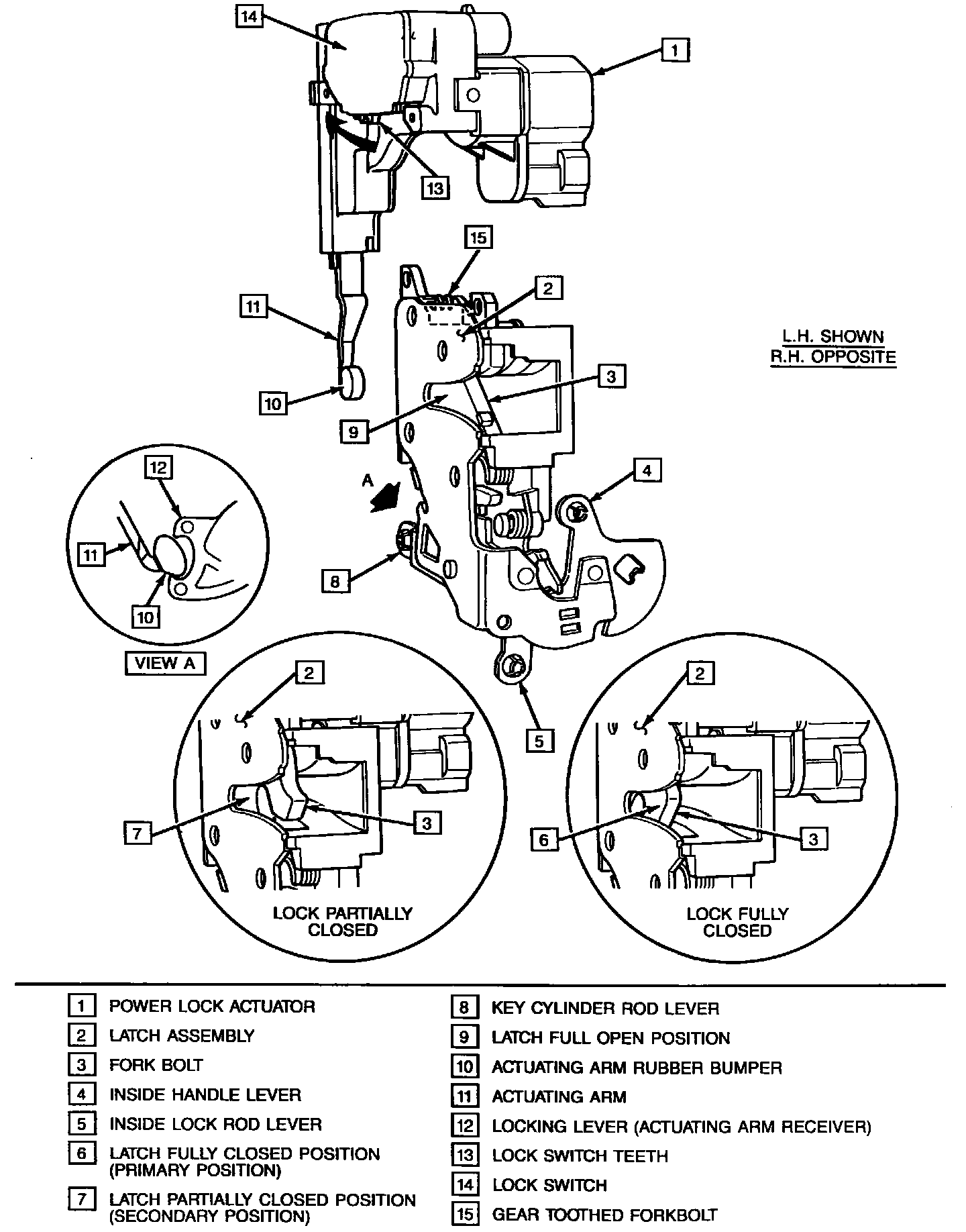 5. Manually operate lock assembly by pushing inward on fork bolt (15) until it clicks into fully closed position (as shown). Lock must operate to fully closed position without any interference.