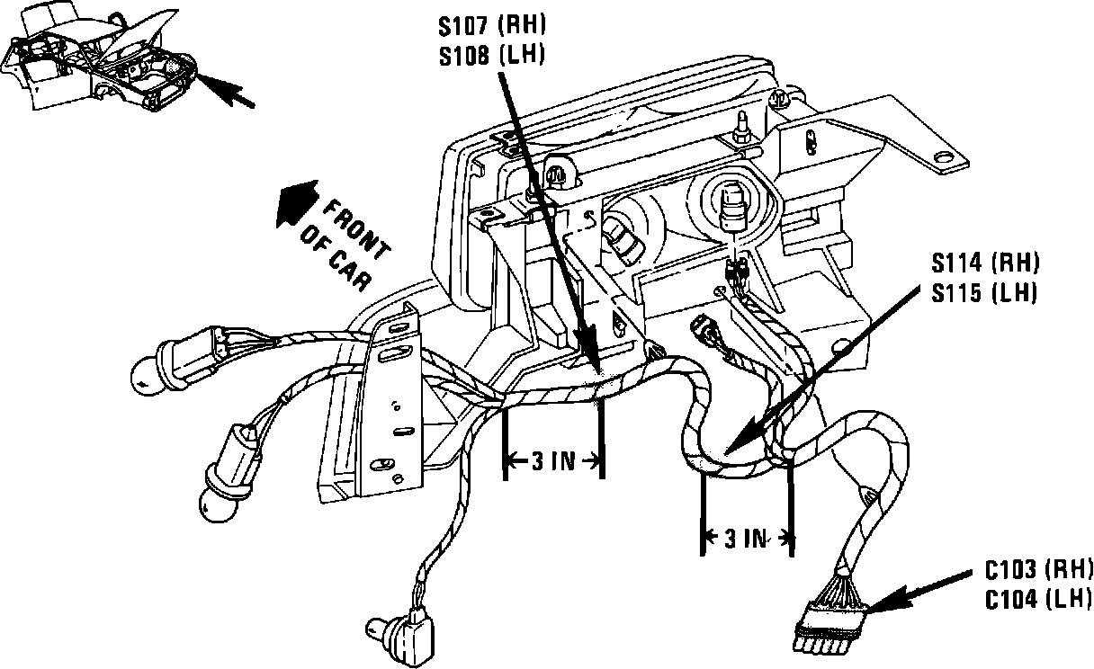 LH forward lights harness, 3 inches forward of headlight connectors breakout