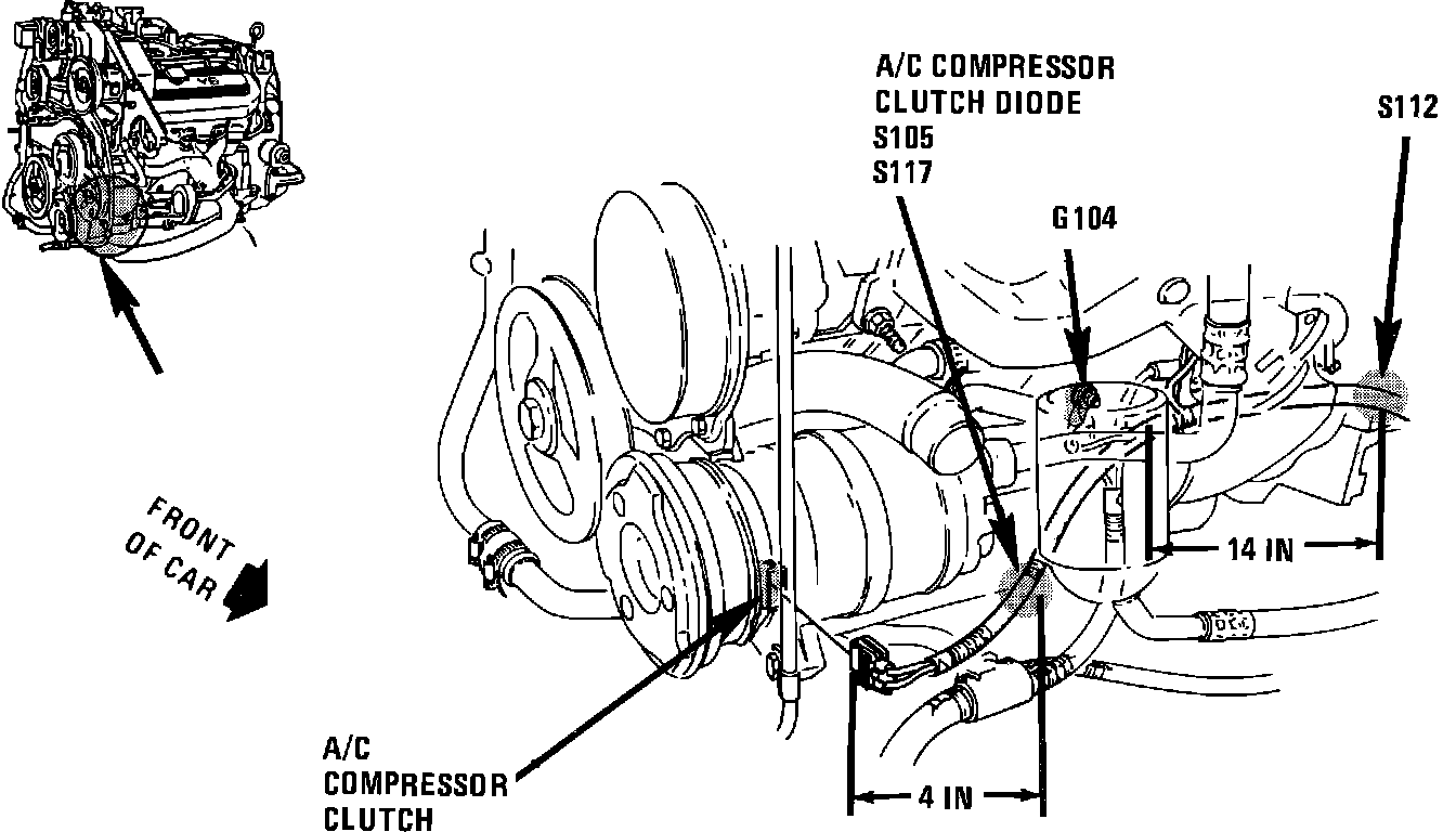 Engine harness, lower RH front of engine, 4 inches from A/C Compressor Clutch connector