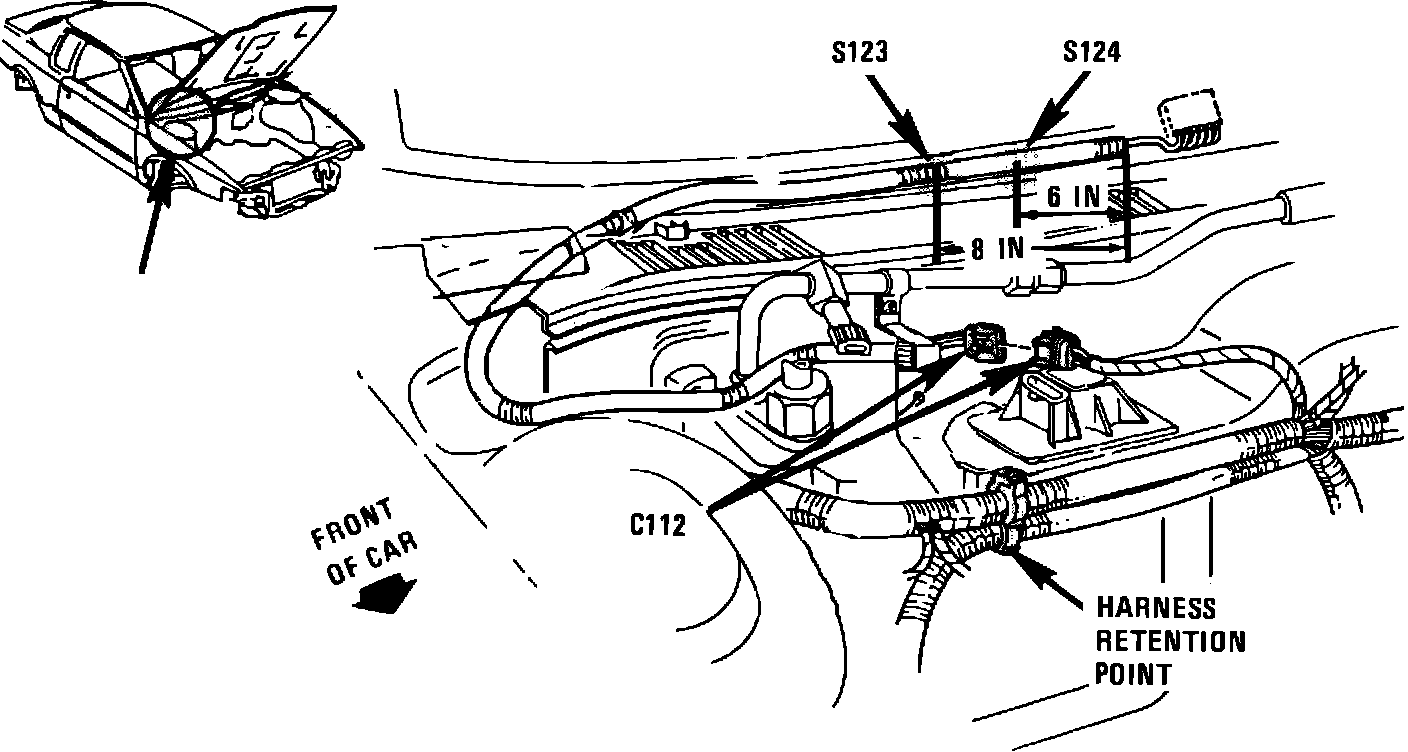 Heated windshield harness, center of cowl, 6 inches right of conduit end