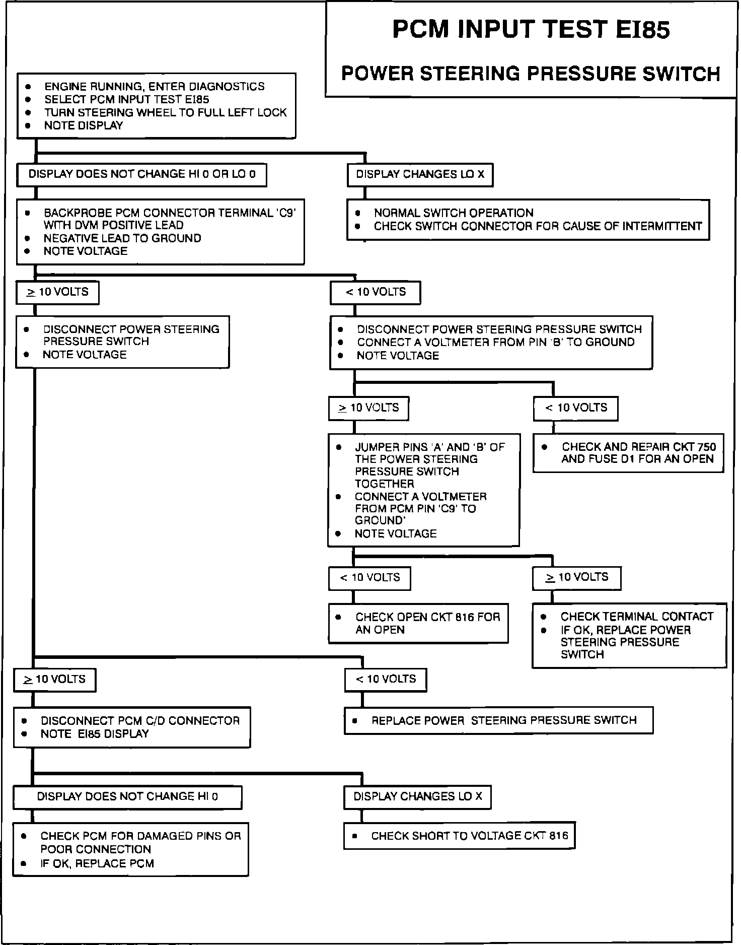 This test detects the open and close of the power steering switch located on the steering gear at terminal C9 of the PCM.