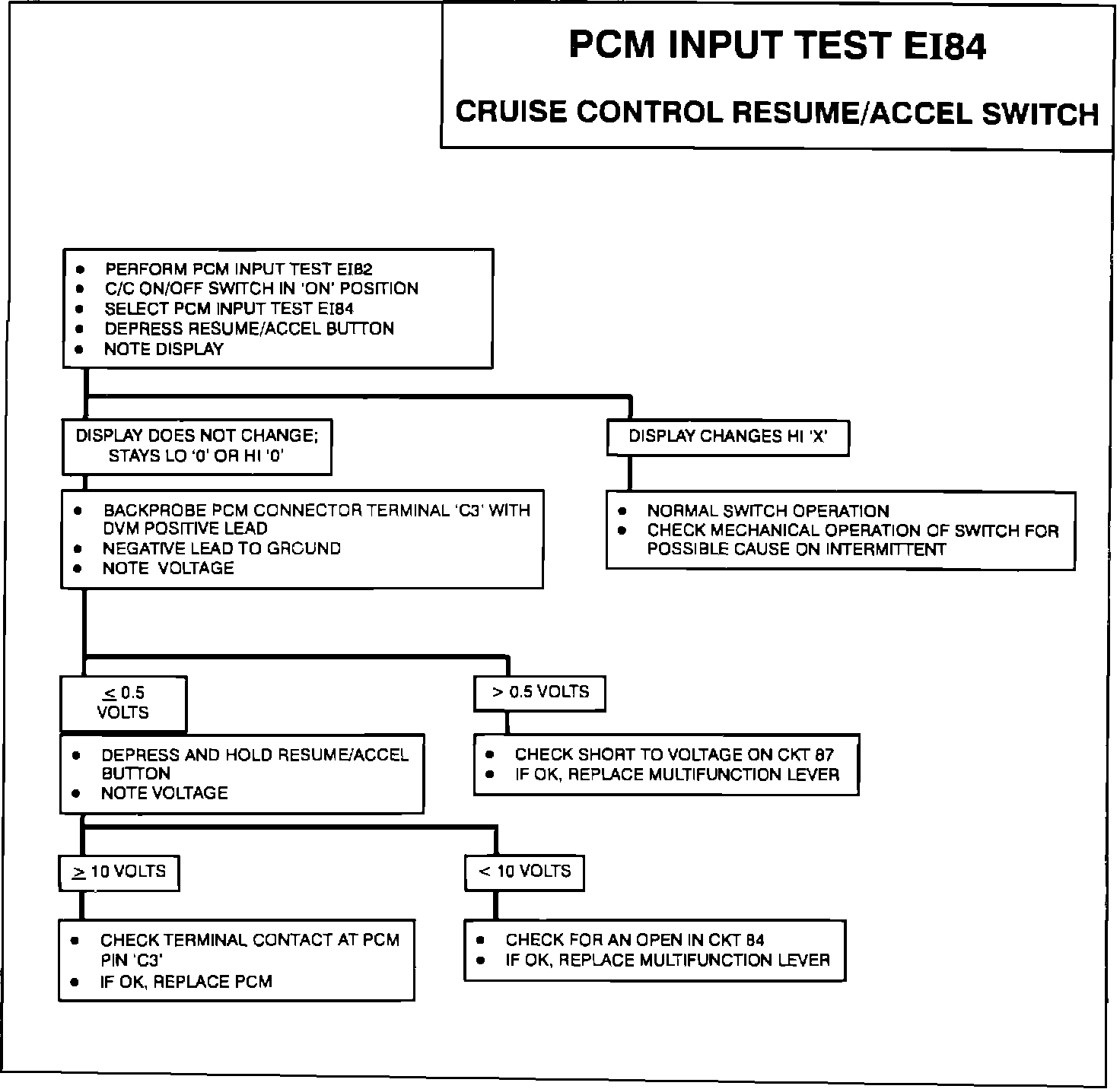 NOTE: The cruise switch must be on to perform this test. Switch test EI82 should be performed before this test to ensure power to the RESUME/ACCEL switch.