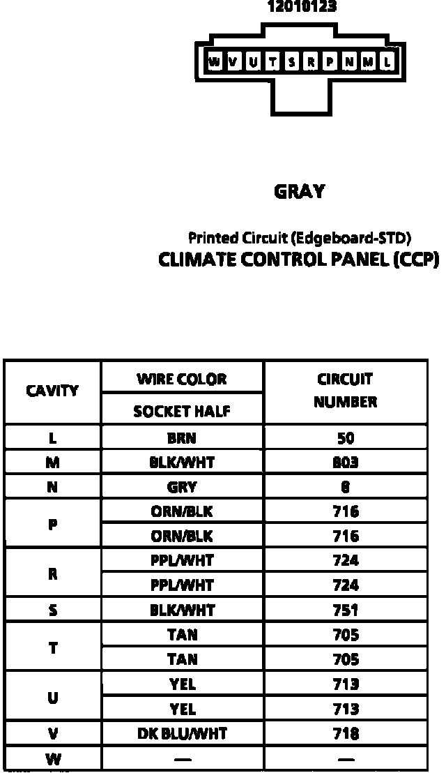 Climate Control Panel (CCP) Connector Face: