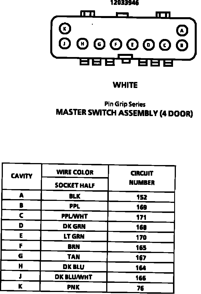 Master Switch Assembly (4 Door) Connector Face: