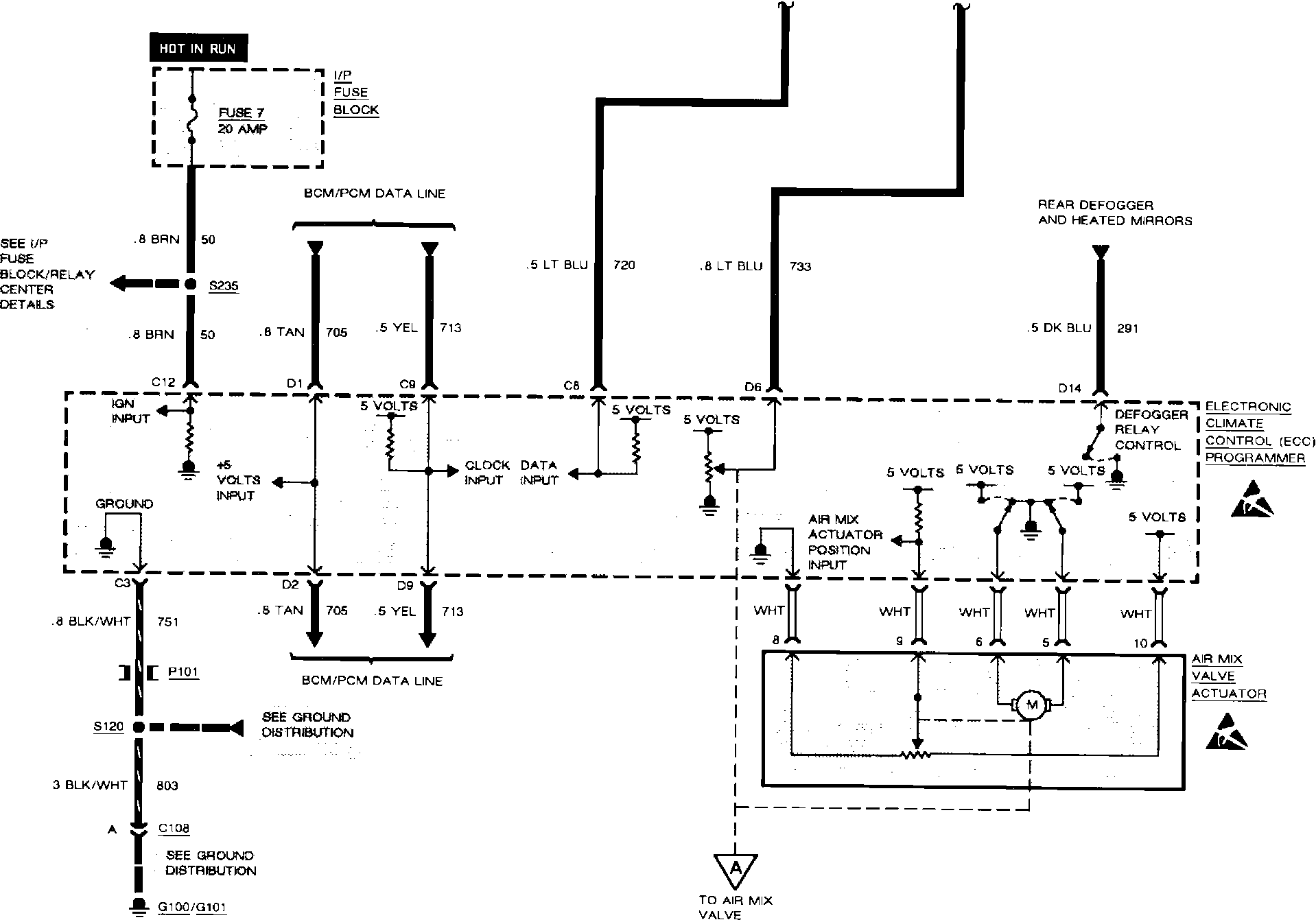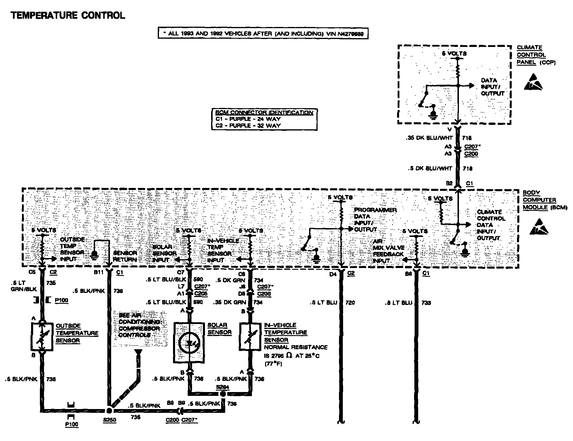 The temperature sensors provide input signals to the Body Computer Module (BCM) which are used by the BCM to control the compressor clutch, blower motor, and air delivery.