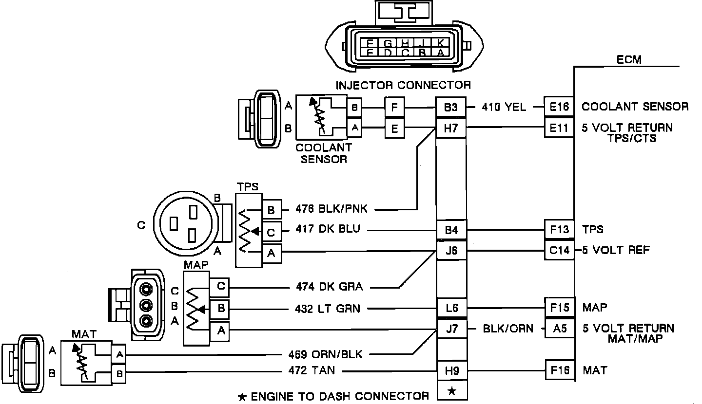 The sensor provides coolant temperature information to the PCM/ECM for fuel enrichment, ignition timing, canister purge control, air management, and closed loop fuel control. A failure in the coolant sensor circuit should set either a code E014 or code E015. An intermittent problem in the coolant sensor circuit can set a code E073.