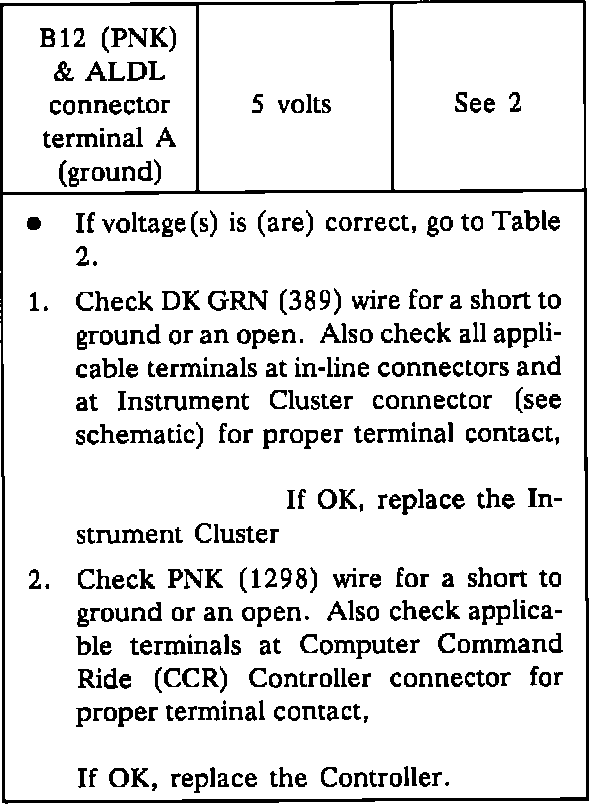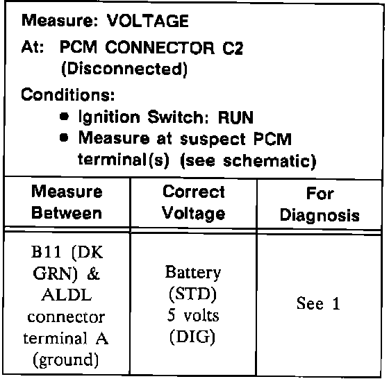 Test B: Powertrain Control Module (PCM) Test (Table 1):