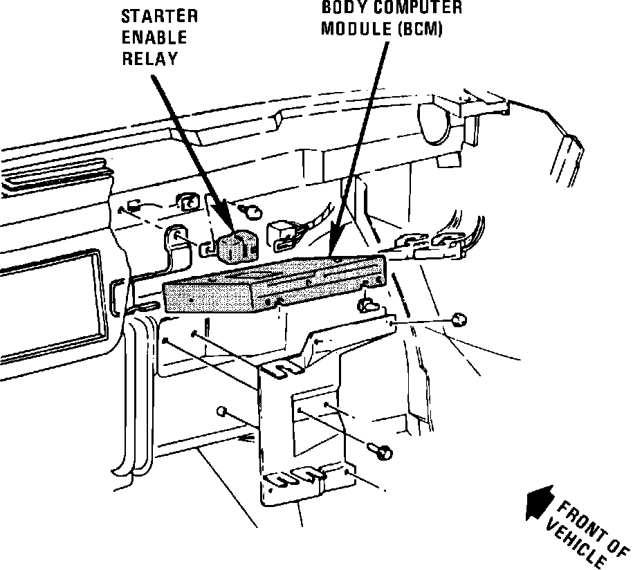 Behind RH side of I/P, behind glove box, above BCM