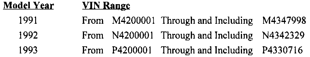Involved are all 1991-1993 FWD model Cadillac DeVilles, Fleetwoods and Sixty Specials equipped with the 4.9L engine (VIN Code B) built within the following VIN ranges: