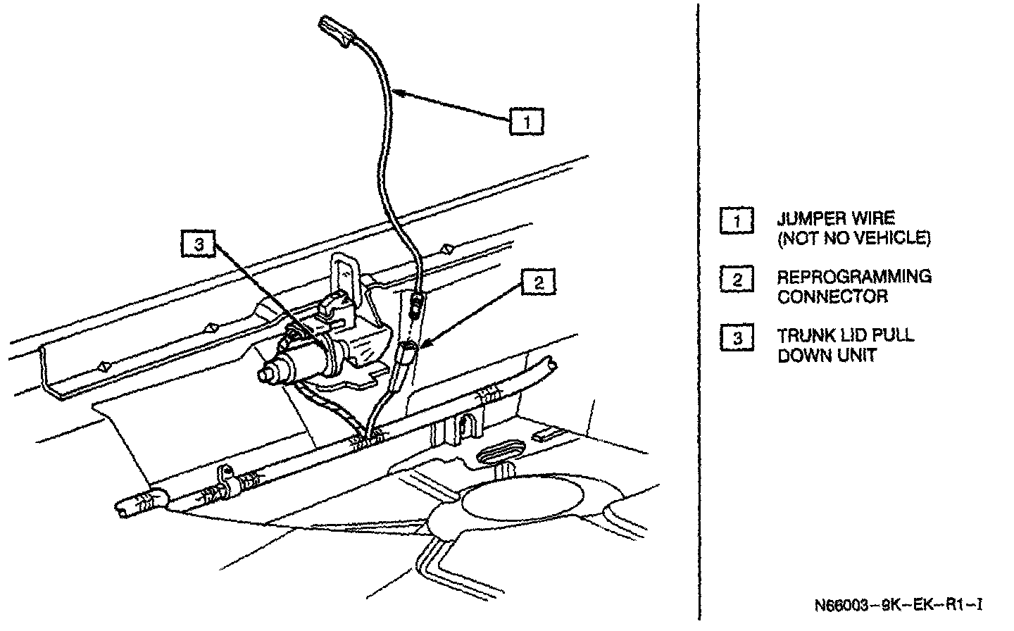 2. Ground black single wire connector located at trunk pull down unit.