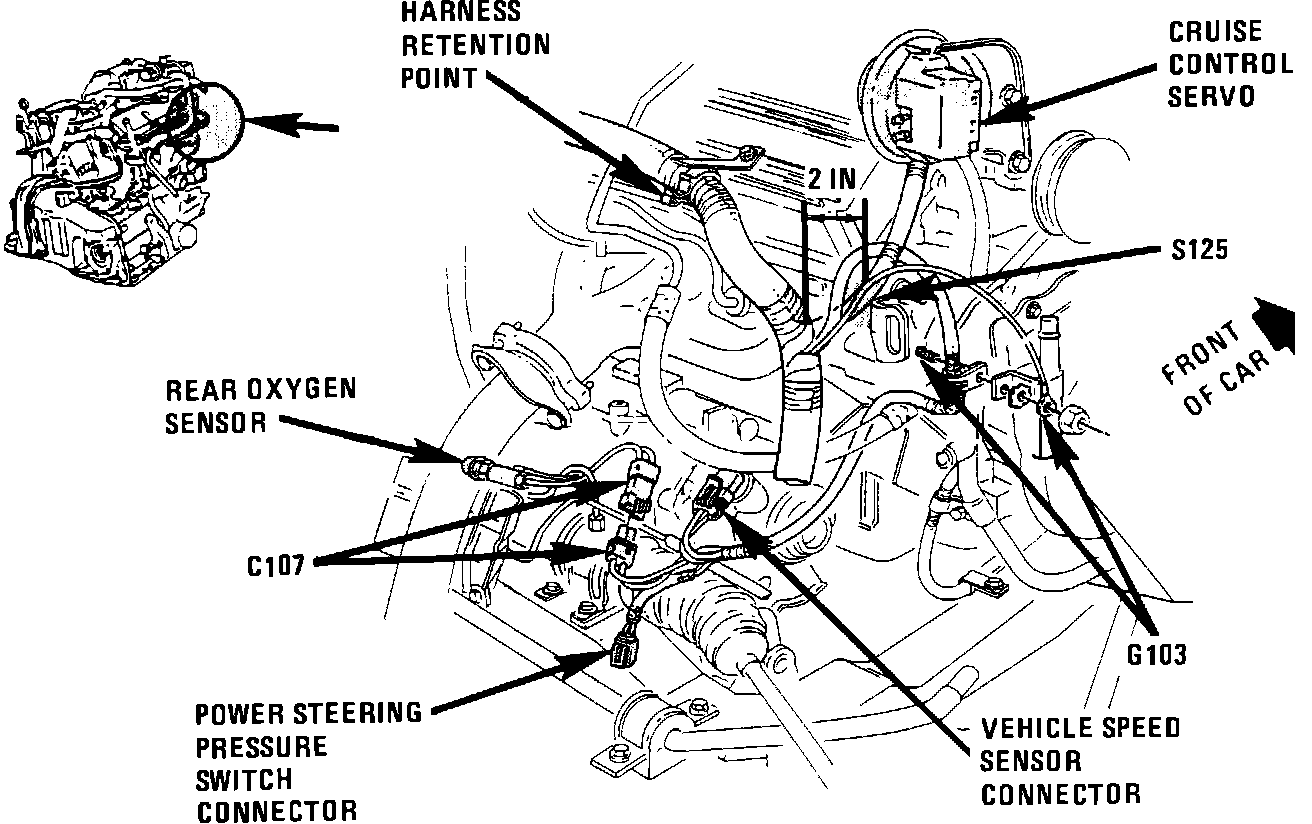 Engine harness, in Cruise Control Servo branch, 2 inches from servo breakout