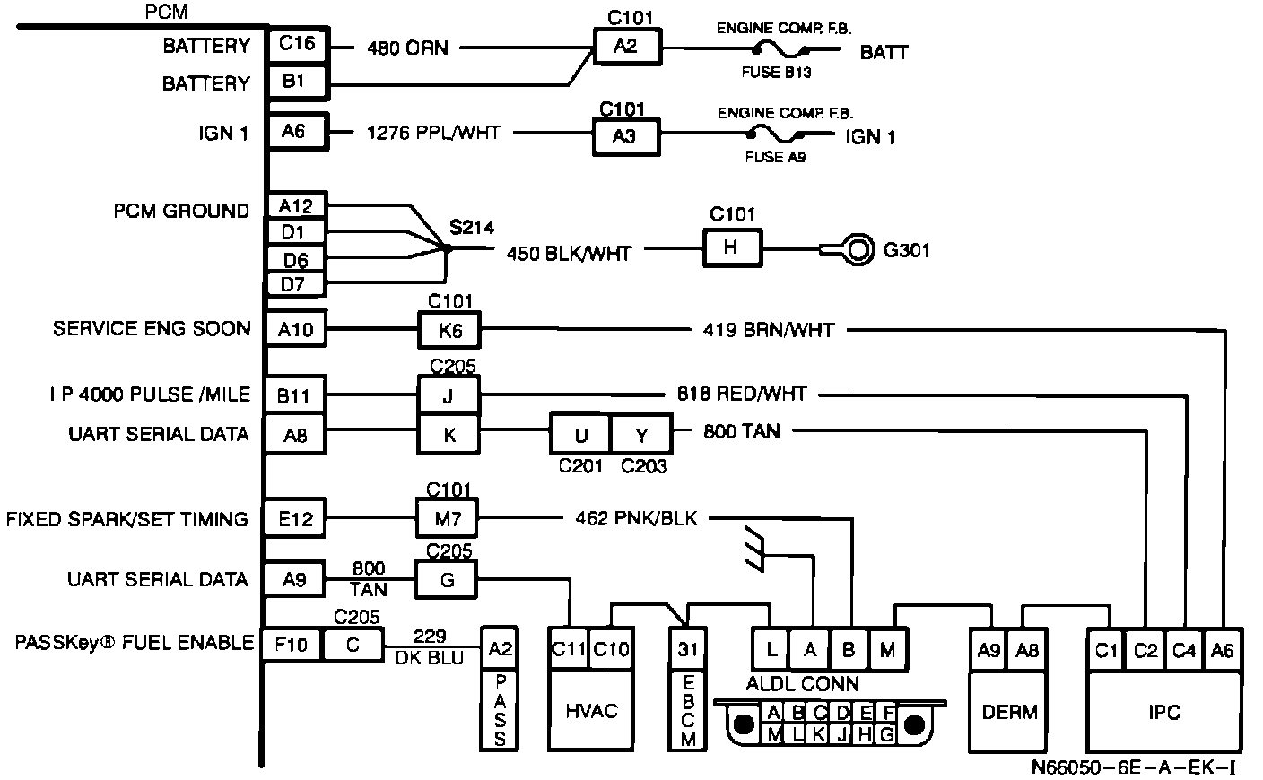 The use of the communication line allows for the separate controlers to share information. Examples of this may be gage information sent from the PCM to the Instrument Panel Controller (IPC), A/C compressor requests sent from the Air Conditioning Programmer (ACP) to the PCM, or Climate Control information sent between the IPC and ACP. This shared information architecture also provides for the on-board self diagnostic capabilities of the computer control systems.