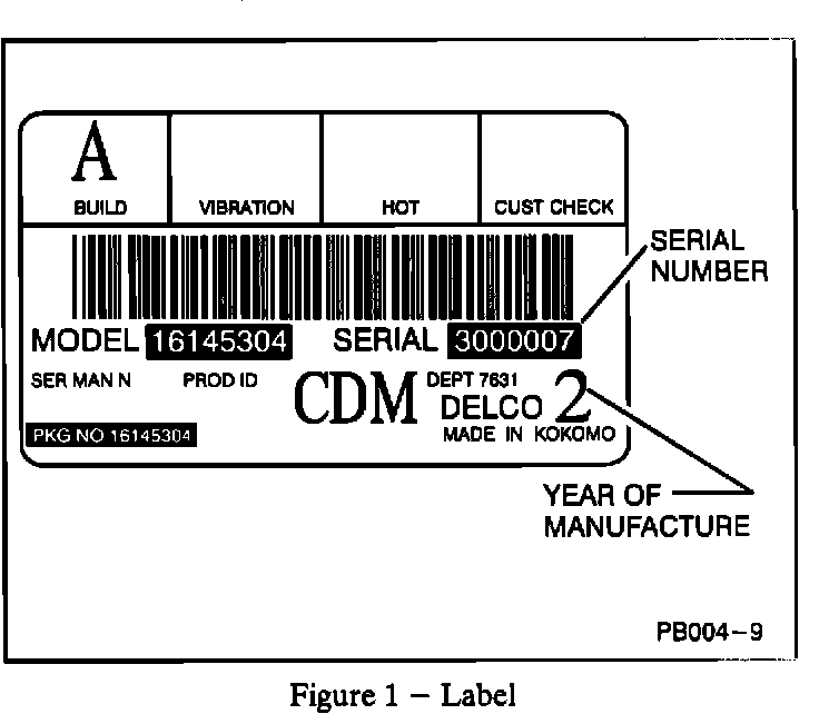 On Eldorados, Sevilles, Broughams, and Allantes remove the remote receiver to locate the bar code serial number label shown in Figure 1. A large "2" in the lower right corner means that the unit is a 1992 model. If the serial number begins with a "3" or "4", the remote receiver should be sent in for service to an authorized AC-Delco Service Center. If the serial number begins with "5" or a large "3" is present, the latest changes have been made internally and other causes for the condition should be investigated.