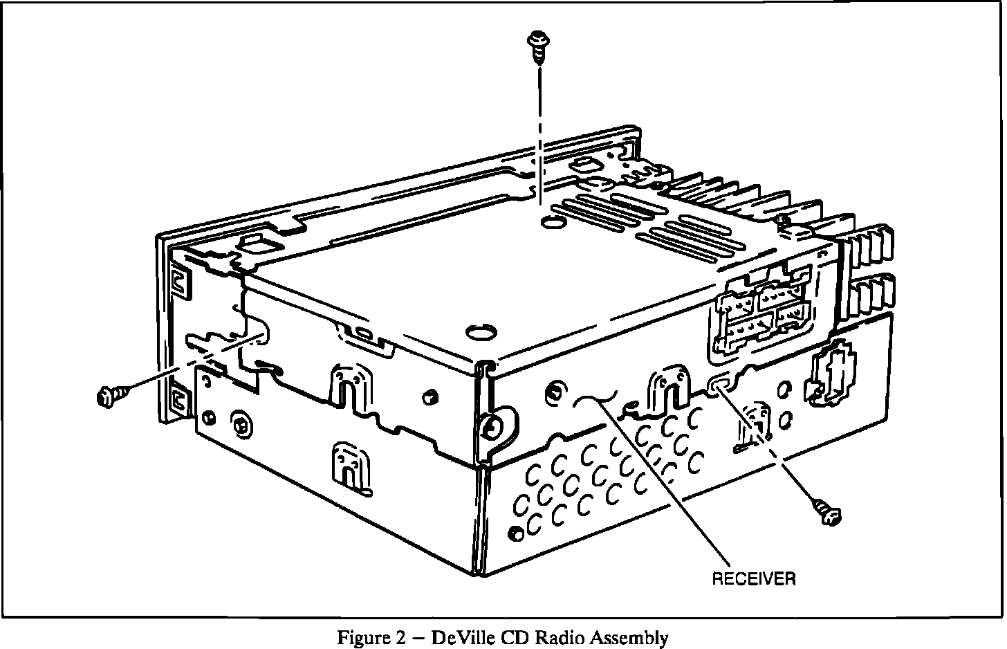 On DeVilles and Fleetwoods with Bose CD remove the radio to determine if it has an affected CDM receiver. This type of radio is a two-piece unit with the receiver bolted to the control head to form one unit. Separate the receiver by removing three screws to gain access to the label and follow the procedure above to examine the serial number. Refer to Figure 2.