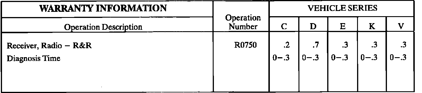 For warranty purposes use Labor Operation R0750 at the times shown.