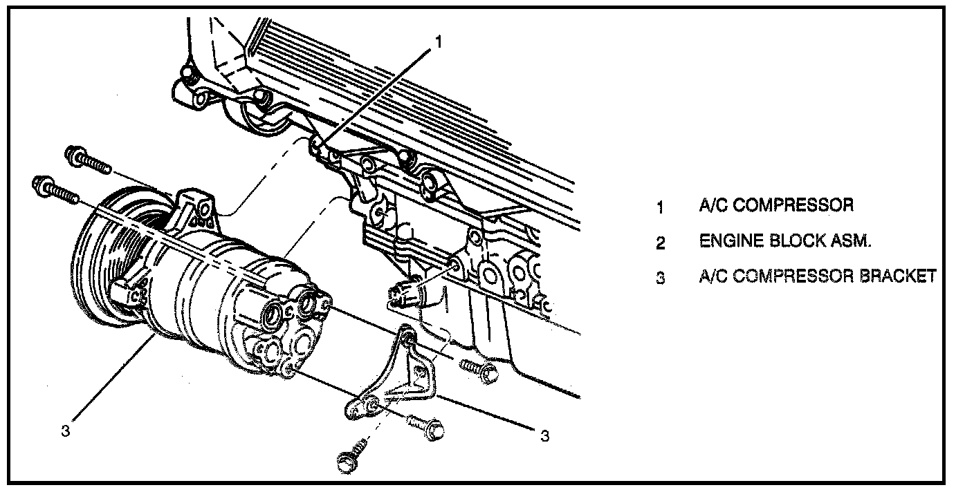 Tighten: Bracket-to-compressor bolts to 34 N.m (25 lb. ft.).