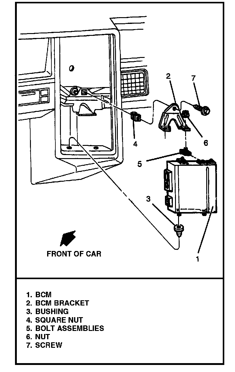 3. Retaining screw and pull BCM and mounting bracket out of cavity.