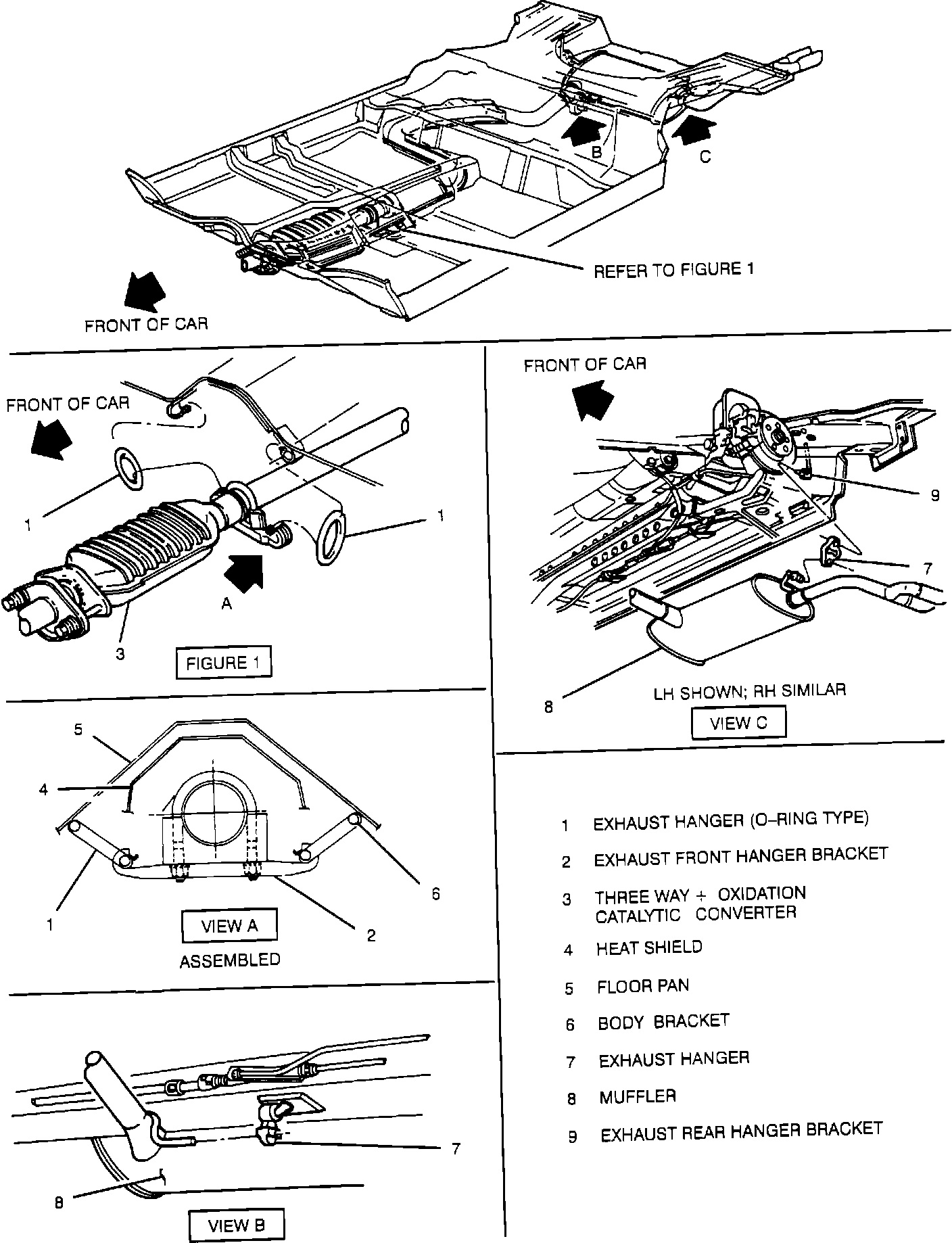 - Intermediate exhaust pipe to converter clamp and O-ring hangars. Refer to figure.