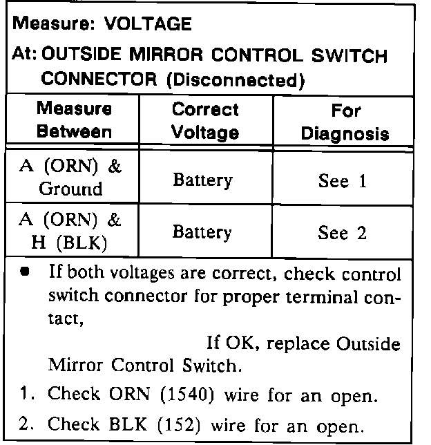 Test A: Both Mirrors Do Not Operate In Any Mode: