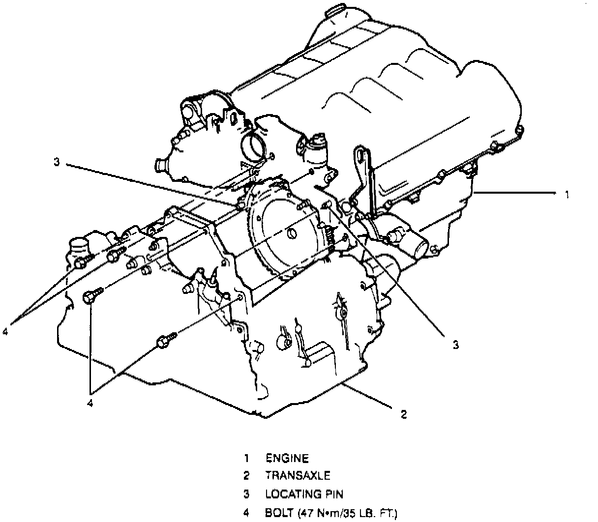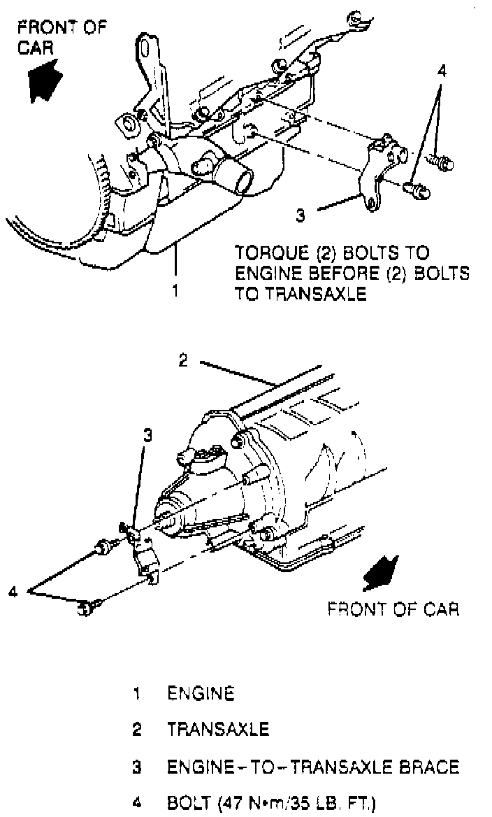 31. Remove engine to transaxle heat shield and bracket, then two engine to transaxle bolts.