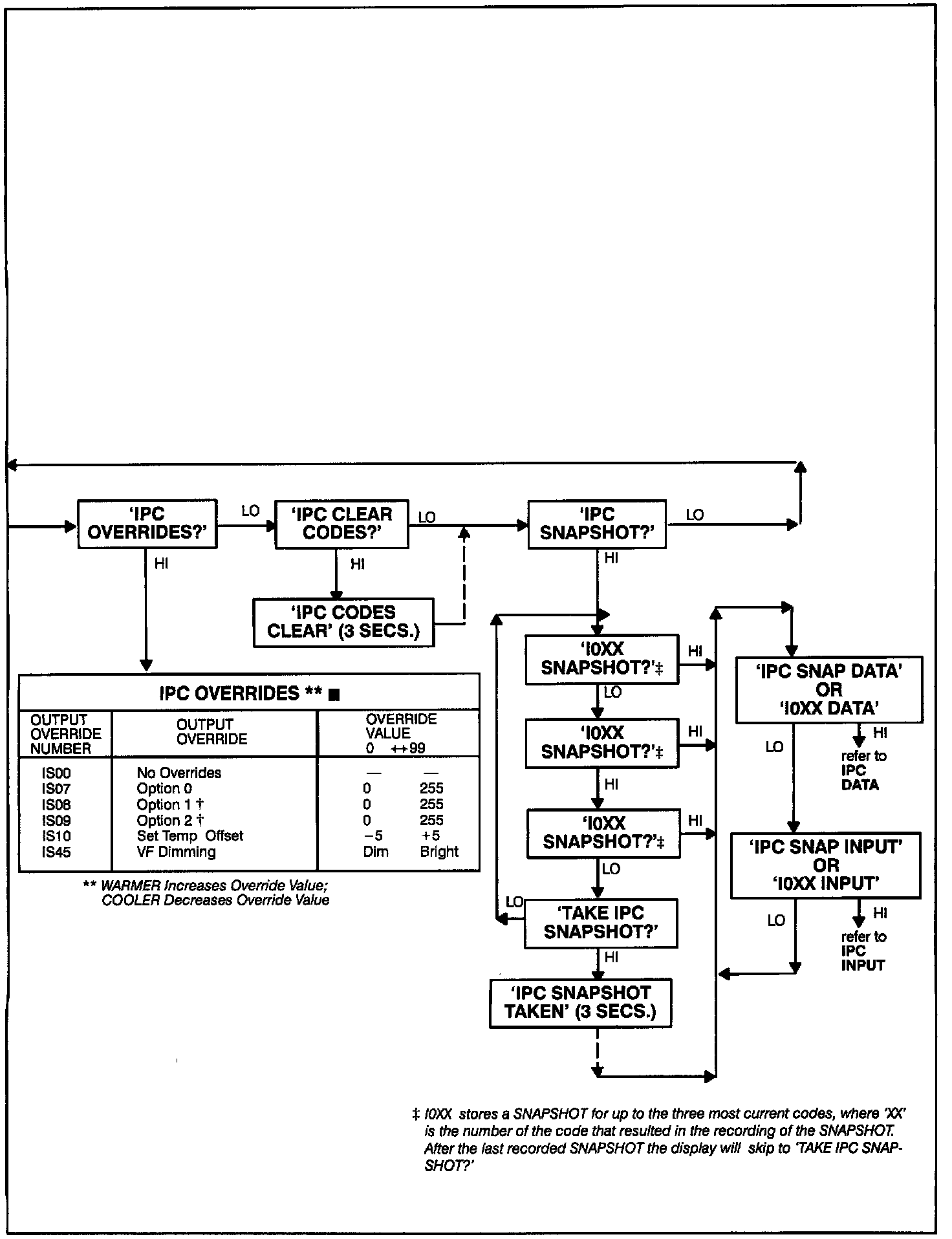 IS45 The VACUUM FLUORESCENT DIMMING override will control IPC and Radio VF displays from '0' (Max dim) to '99' (Max bright). The display will hold the override value upon release of the buttons.
