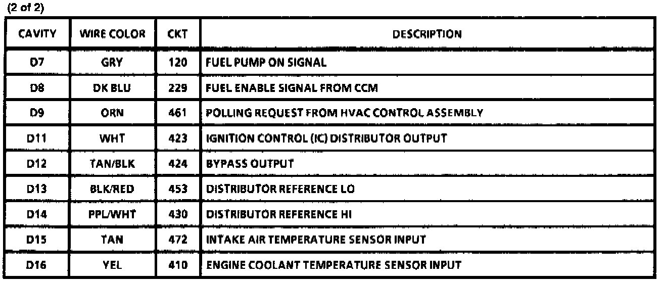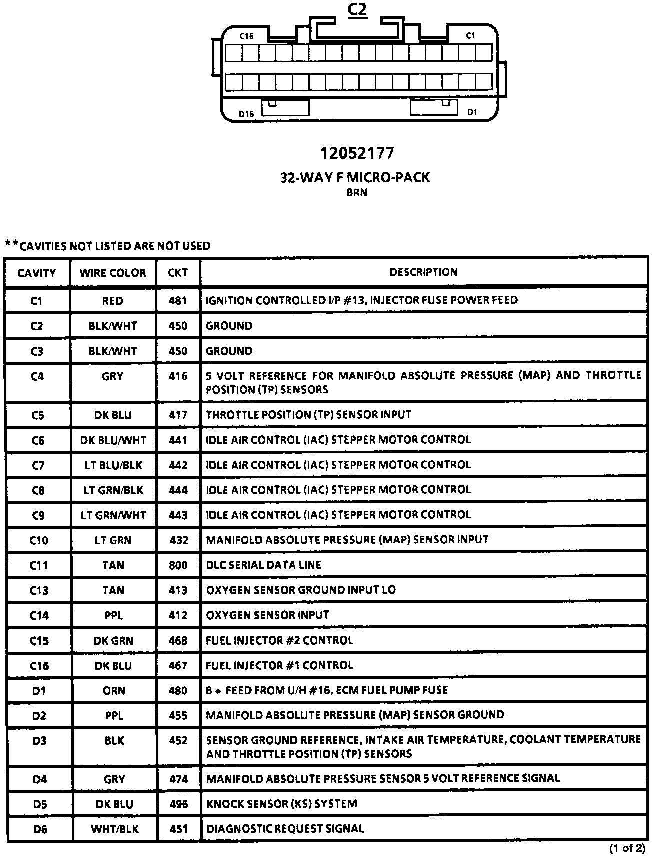 Connector C2 Pin-Outs: Part 1 Of 2: