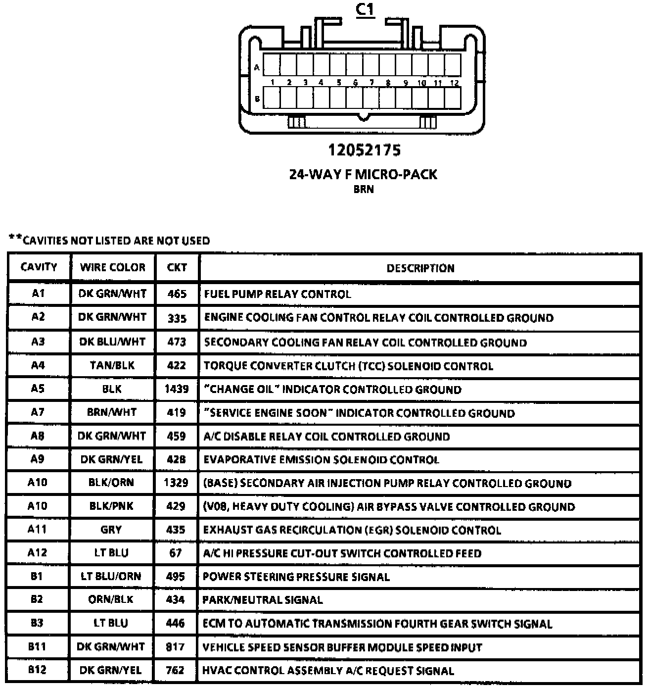Connector C1 Pin-Outs: