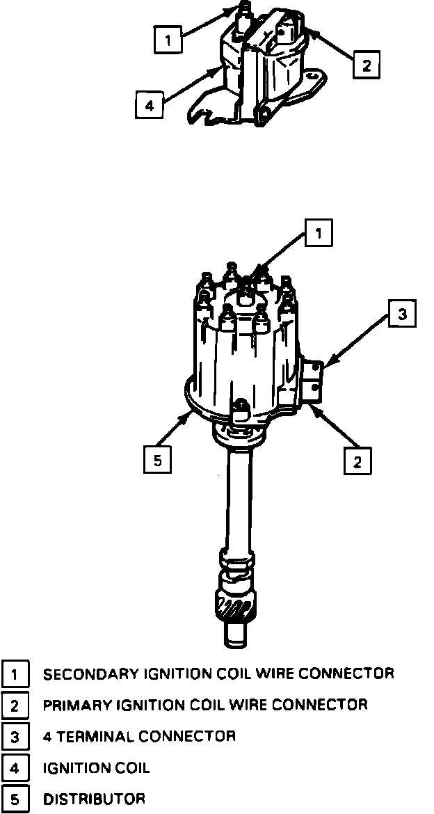 The ignition control system consists of an Distributor Ignition (DI) module, ECM and connecting wires. The distributor has four wires that connect the DI module to the ECM. These circuits perform the following functions: