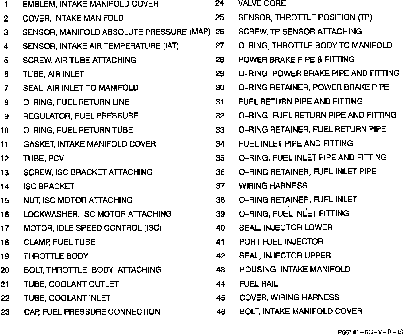 Legend To Throttle Body, Intake Cover And Fuel Rail: