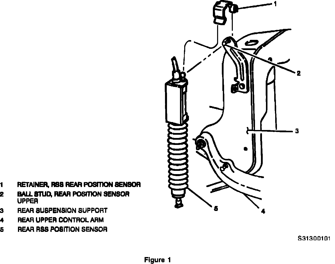 If the sensor becomes detached on a high mileage vehicle, the rear position sensor (P/N 22134863) and ball stud (P/N 3532785) should be replaced. As a preventative measure, retainer clips (P/N 3538474 -two required per vehicle) have been developed to hold the position sensor onto the ball stud. Refer to Figure 1.