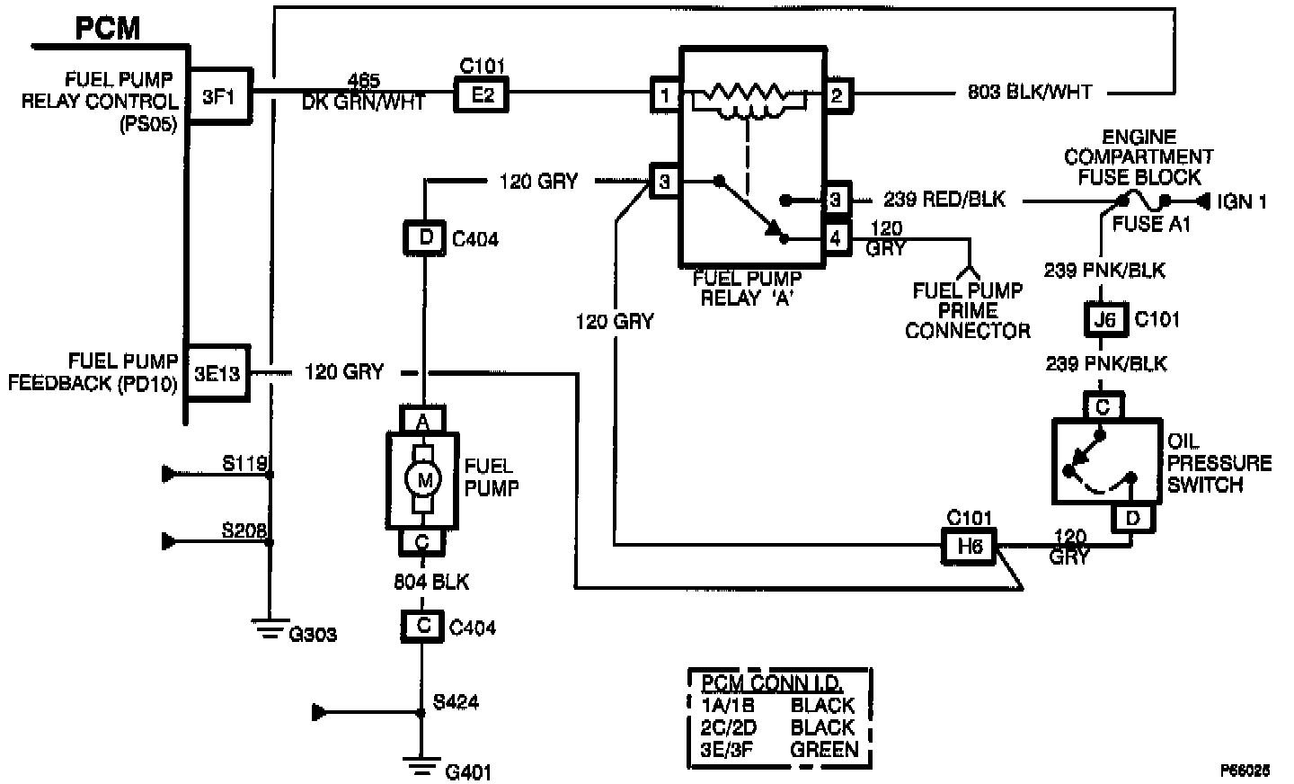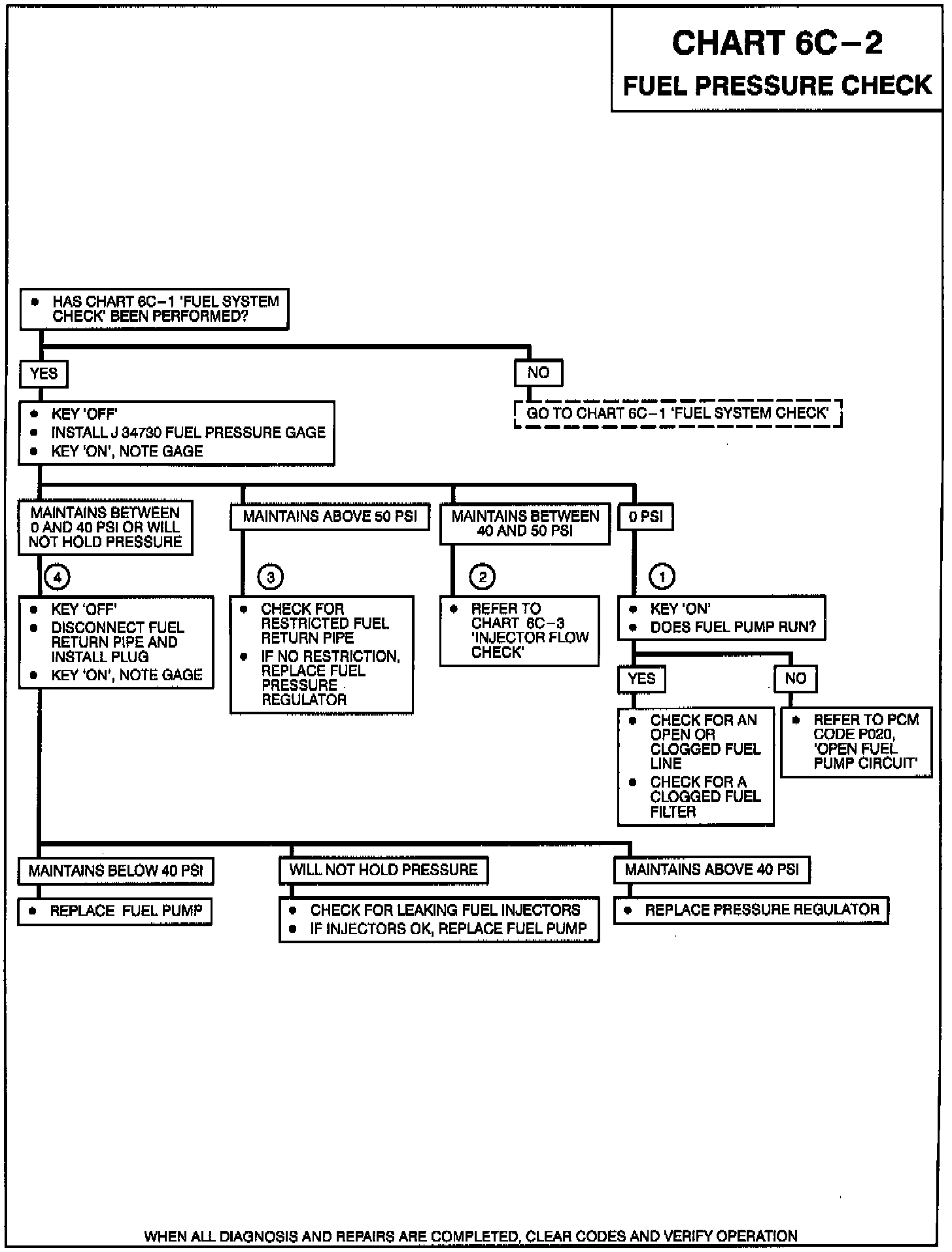 1. If fuel pump does not run at key 'ON', diagnose as if a Code P020 is set to determine the cause. If fuel pump runs at key 'ON', check for an open or clogged fuel line or filter.